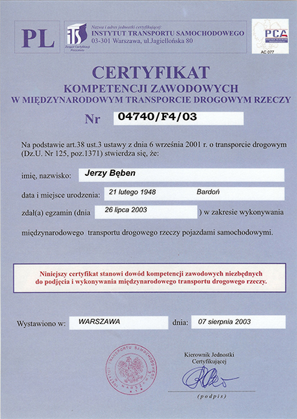 Dlaczego klienci wybierają właśnie nas? Bowiem firma Pol-Uniwersum to przede wszystkim doświadczenie, a także tak ważne w segmencie usług transportowych cechy jak solidność, punktualność, sumienność. Z naszą firmą ładunek bezpiecznie dojedzie do wyznaczonego przez Państwa celu o każdej porze. Nasi pracownicy są pod tym względem w pełni dyspozycyjni. Każdy z naszych kierowców posiada Świadectwo kwalifikacji zawodowej potwierdzające uzyskanie kwalifikacji wstępnej, które umożliwia wykonywanie przewozów drogowych. Pol-Uniwersum s.c. posiada Certyfikat Kompetencji Zawodowych w Międzynarodowym Transporcie Drogowym Rzeczy.